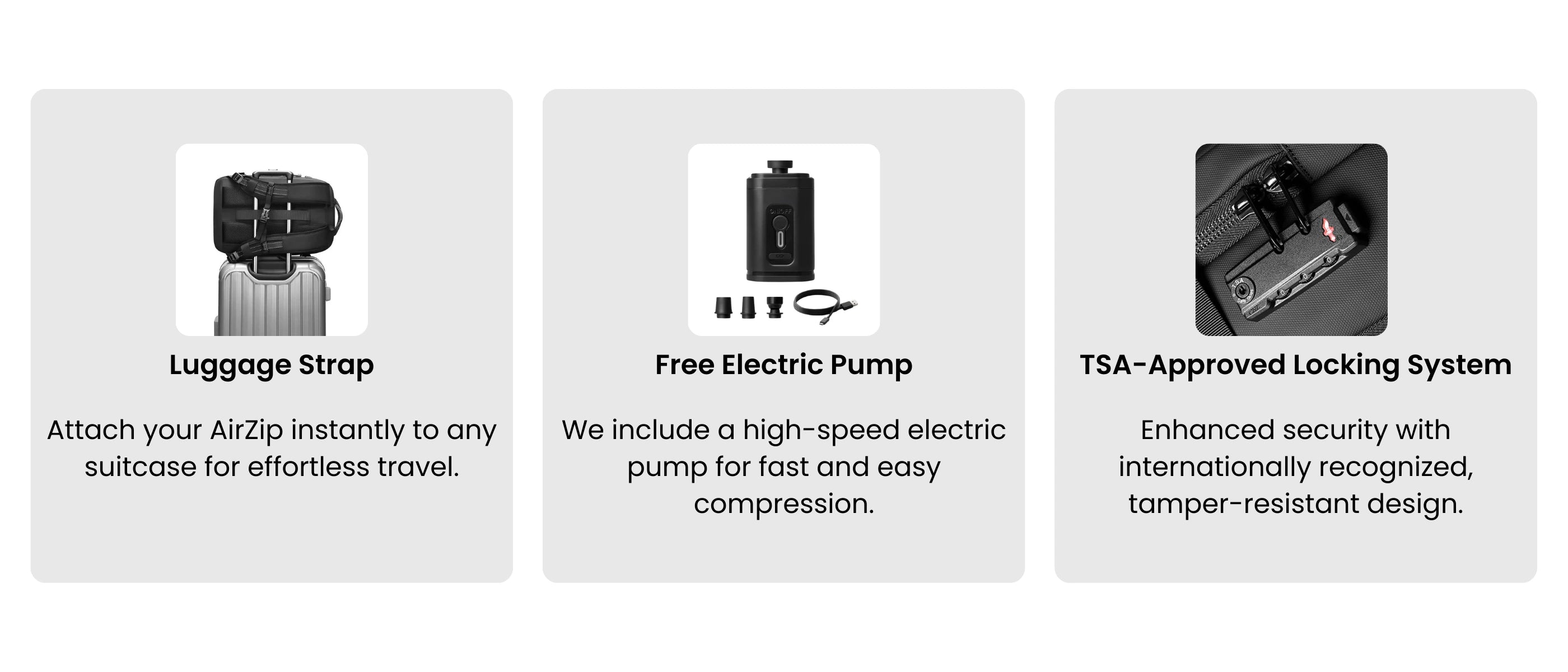 Eliminate excess air instantly with the automatic or manual compression system. Reduce volume by up to 70%.