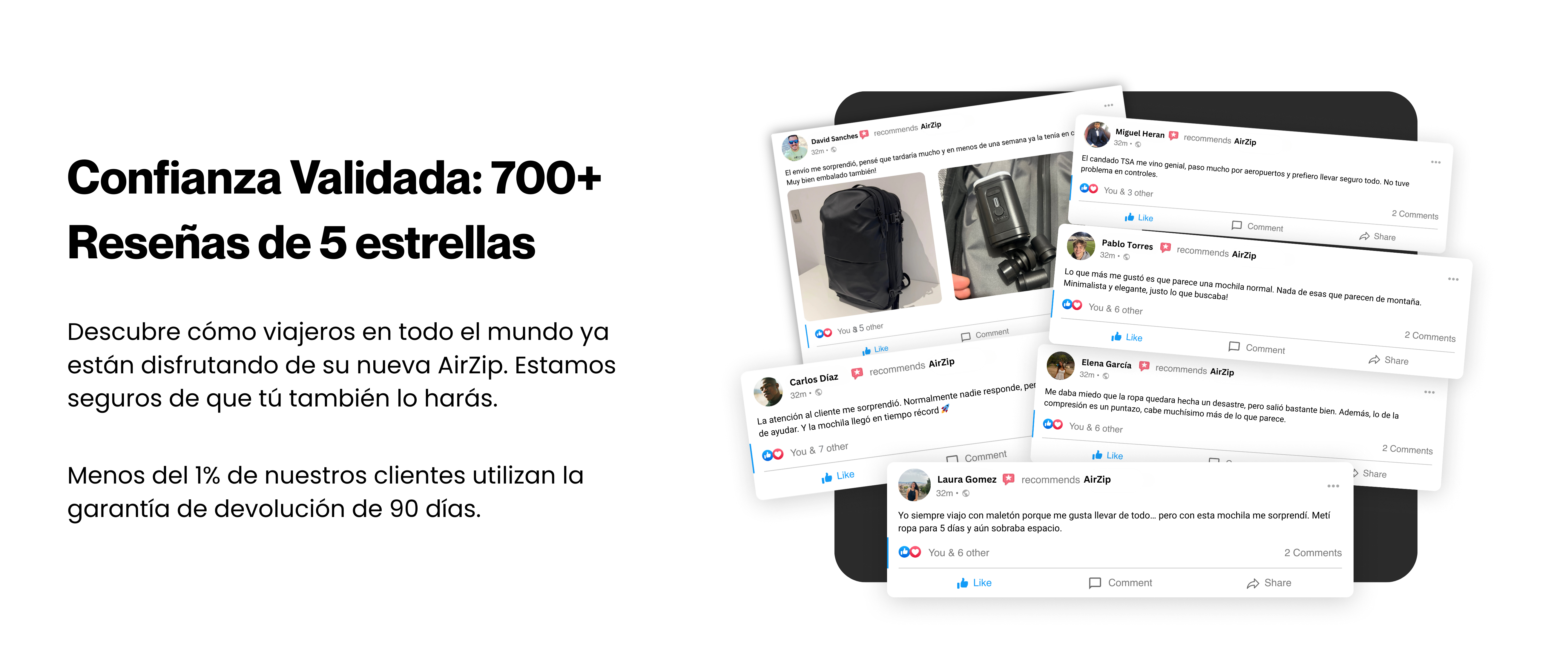 AirZip tiene todo lo que necesitas: compartimento para portátil de 16”, puerto USB-C, espacio para calzado y ropa, y bolsillos estratégicos que mantienen todo en orden.